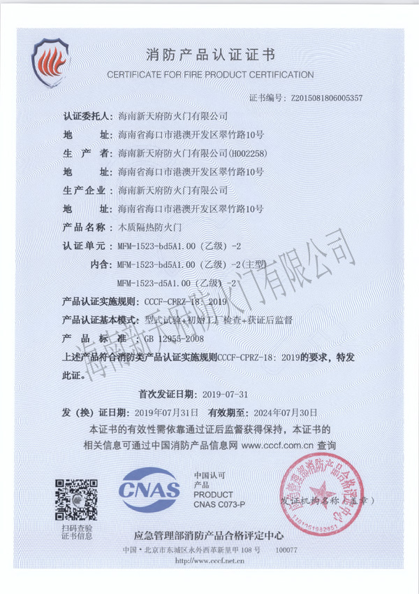海南新天府防火門有限公司