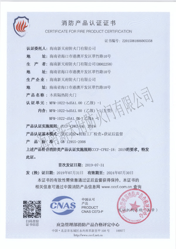海南新天府防火門有限公司